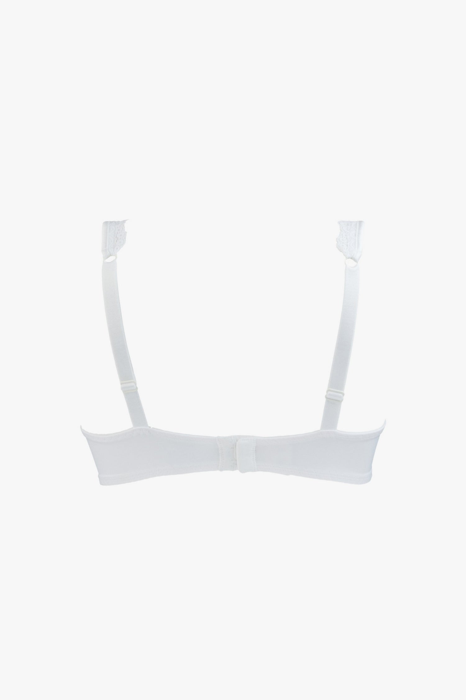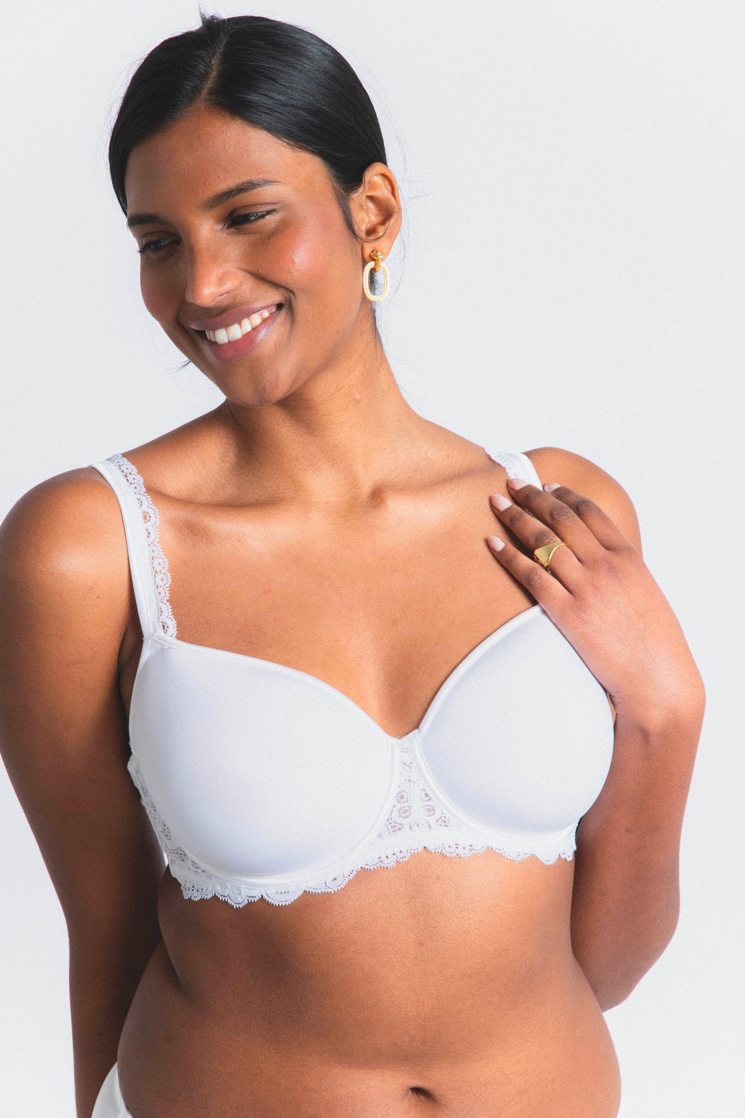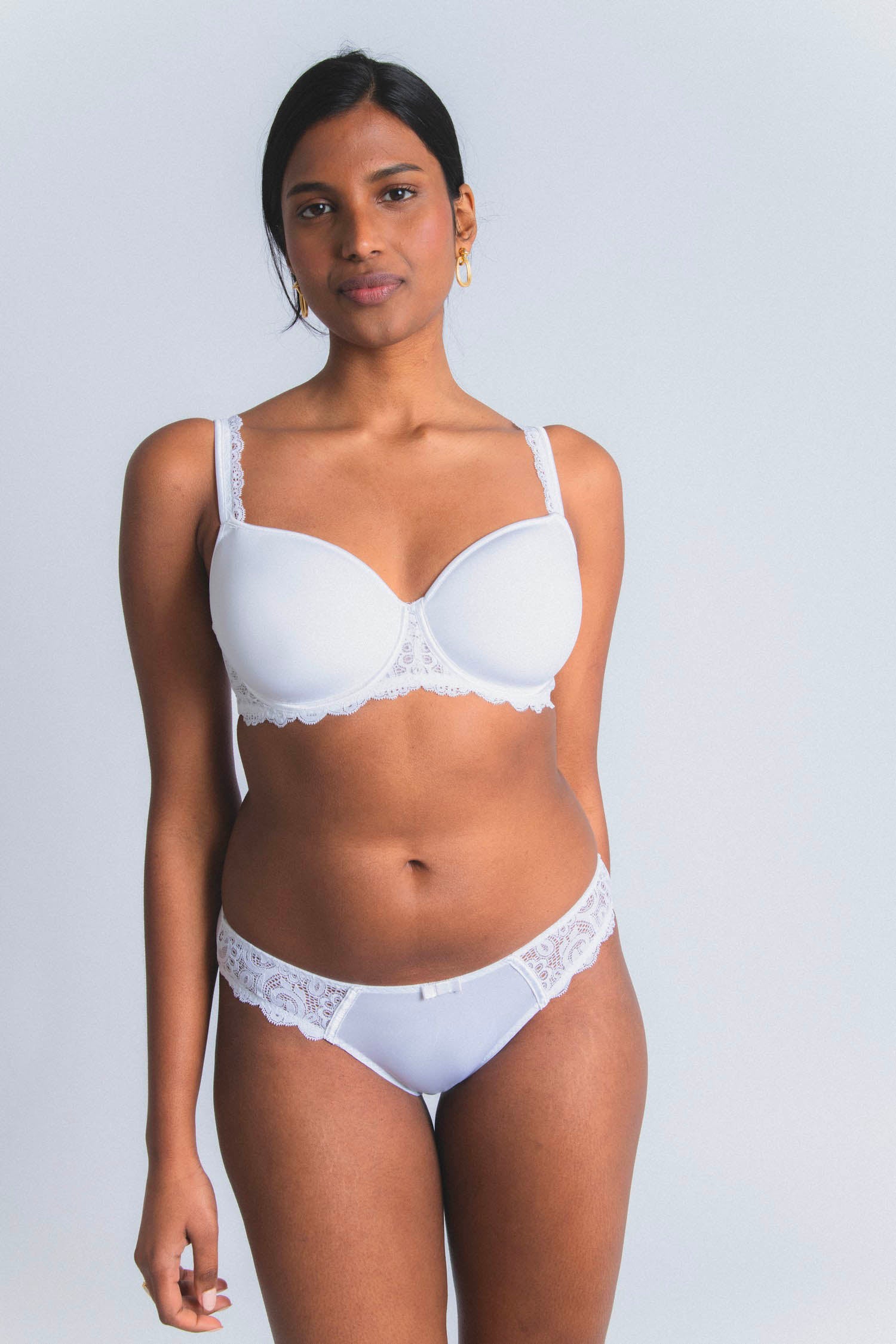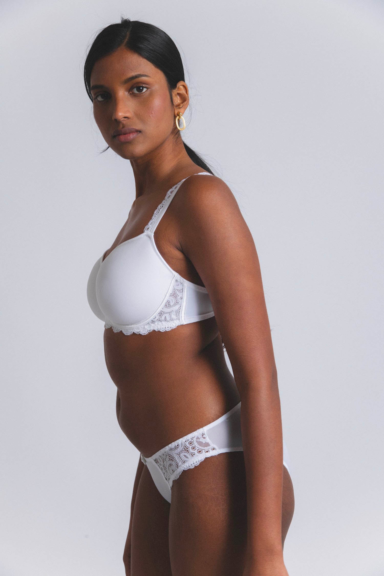 A lightweight and breathable French lace balconette spacer bra for retro-chic style and natural comfort.