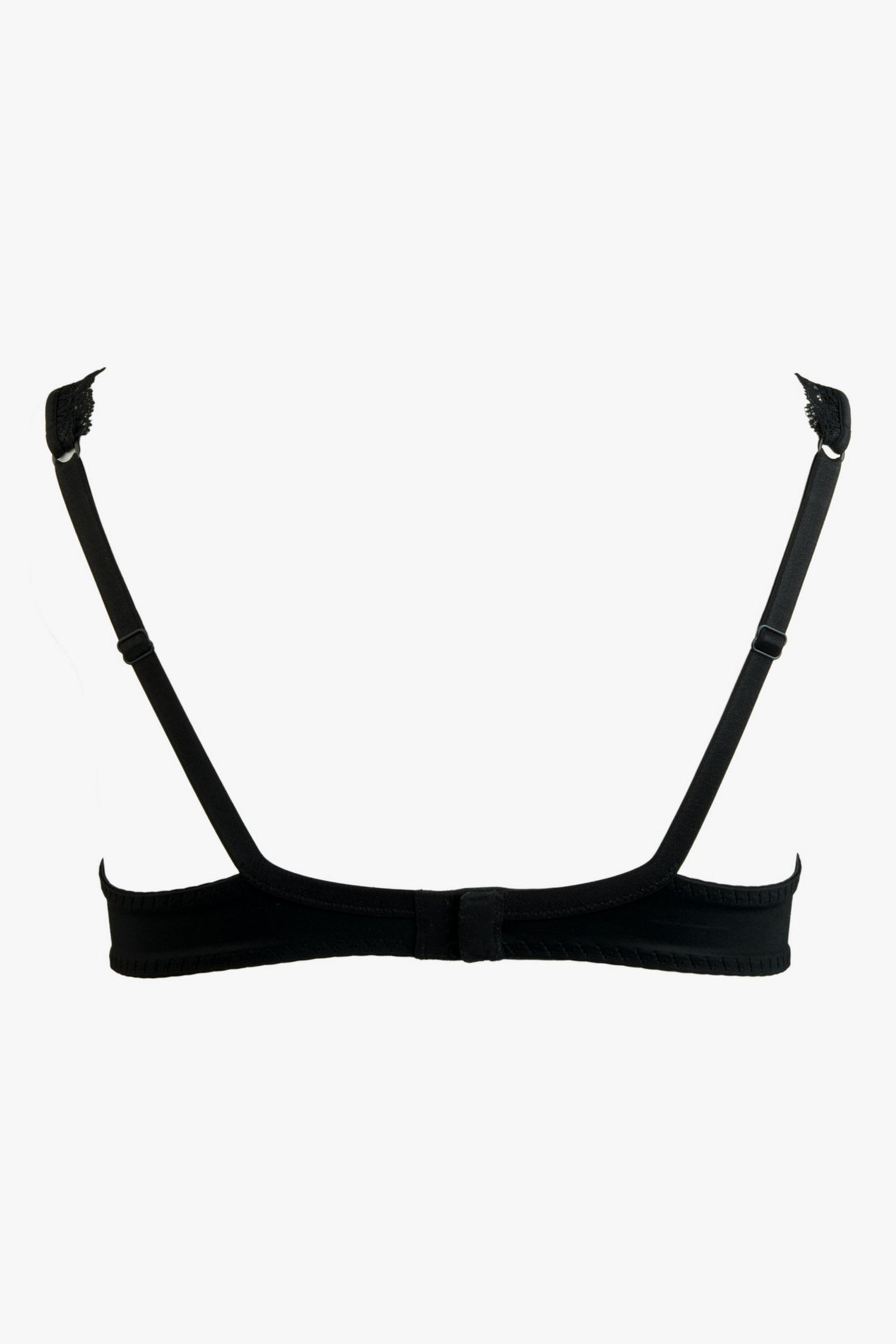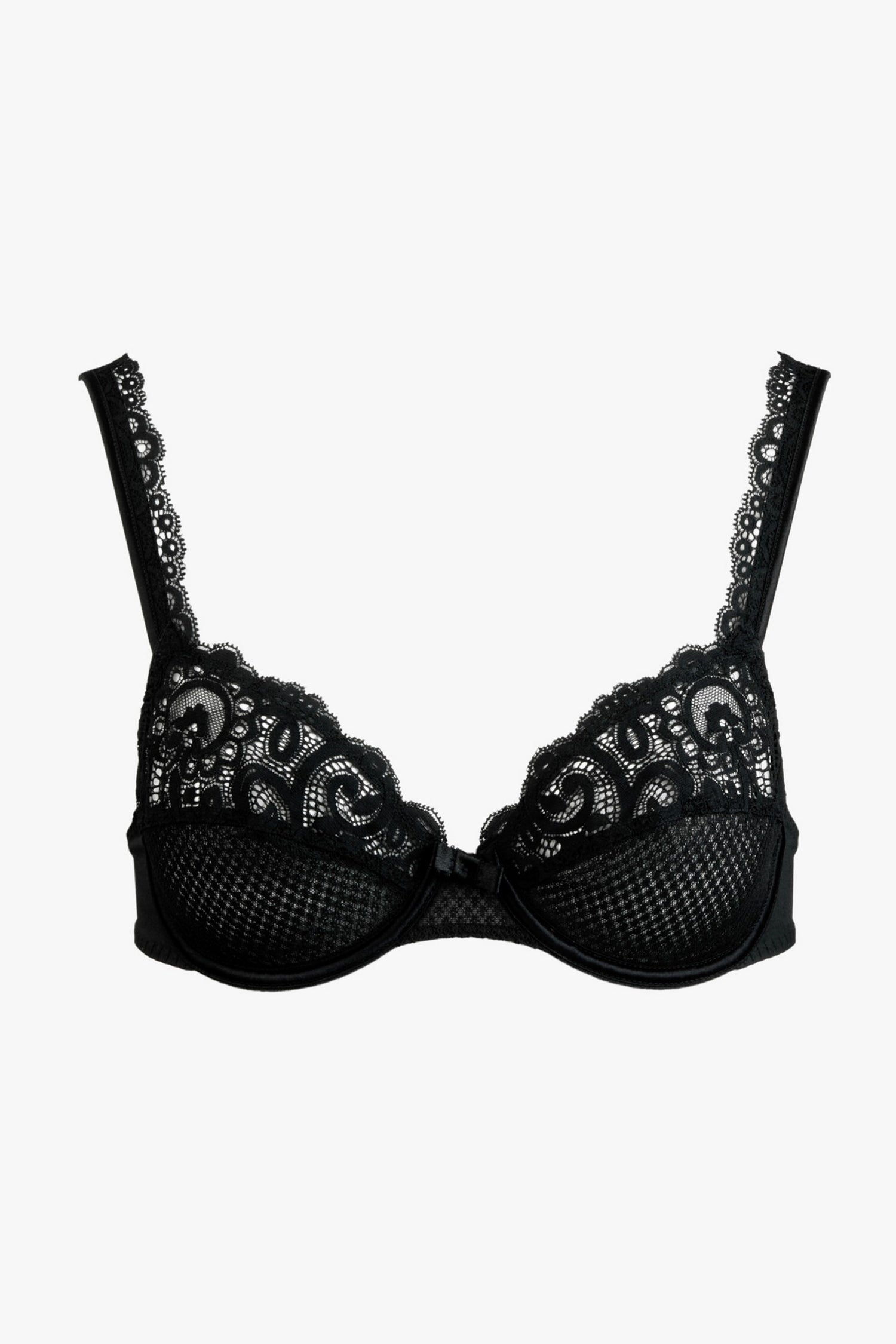 An underwired bra in French lace and fishnet for a retro and comfortable style.
