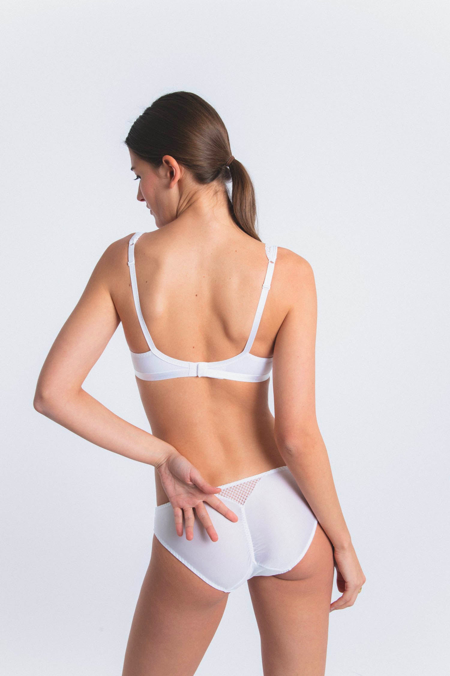 A soft, underwire-free bra in French lace and mesh for a retro, comfortable look.