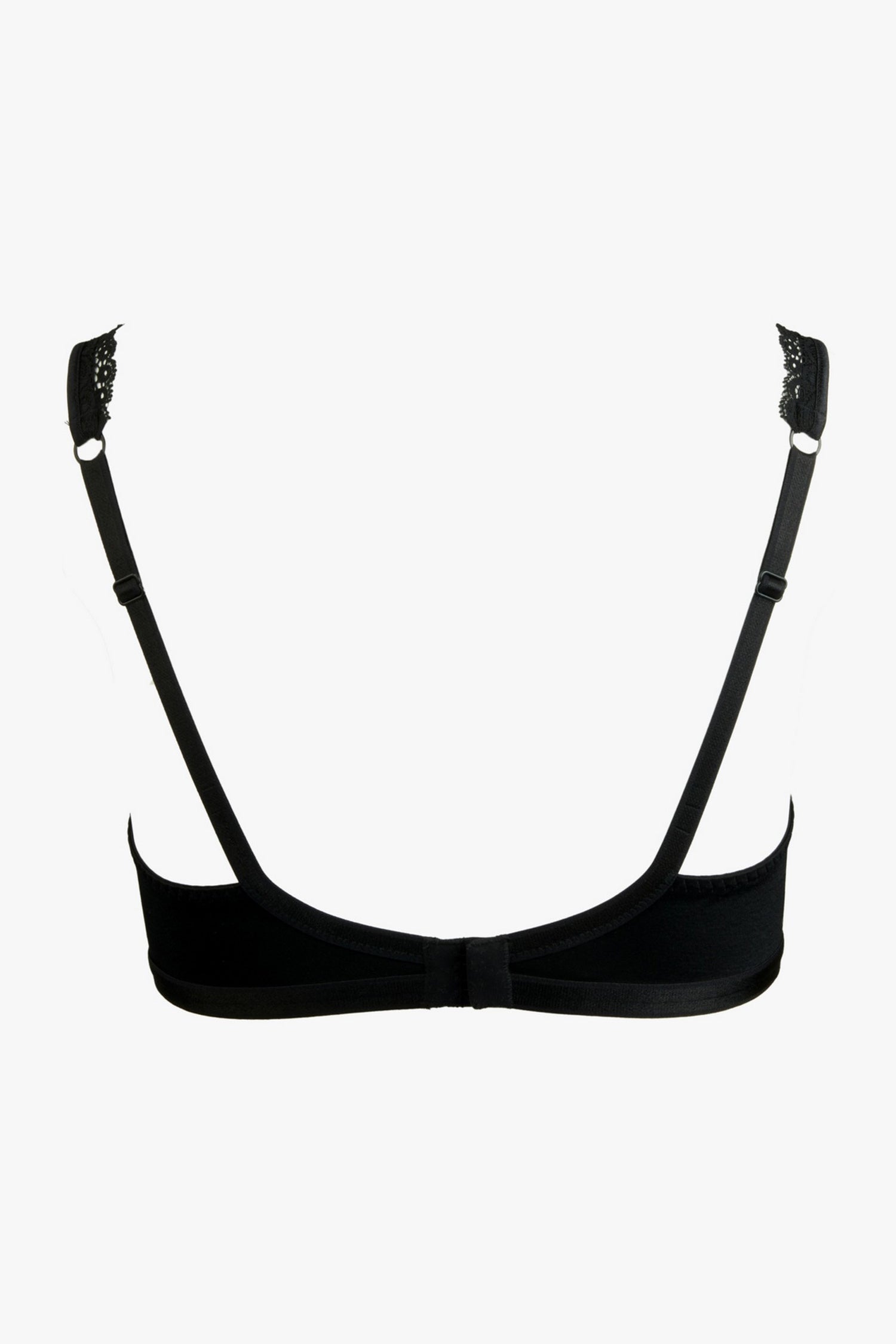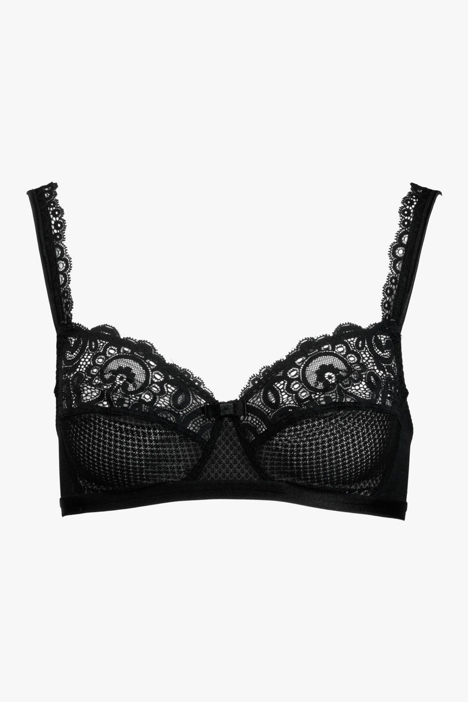 A soft, underwire-free bra in French lace and mesh for a retro, comfortable look.