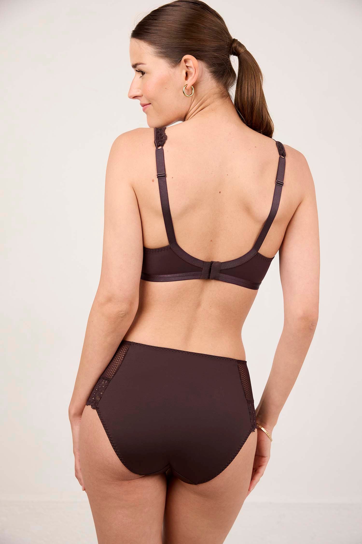 Panties combining French lace and fishnet for a retro and comfortable style.