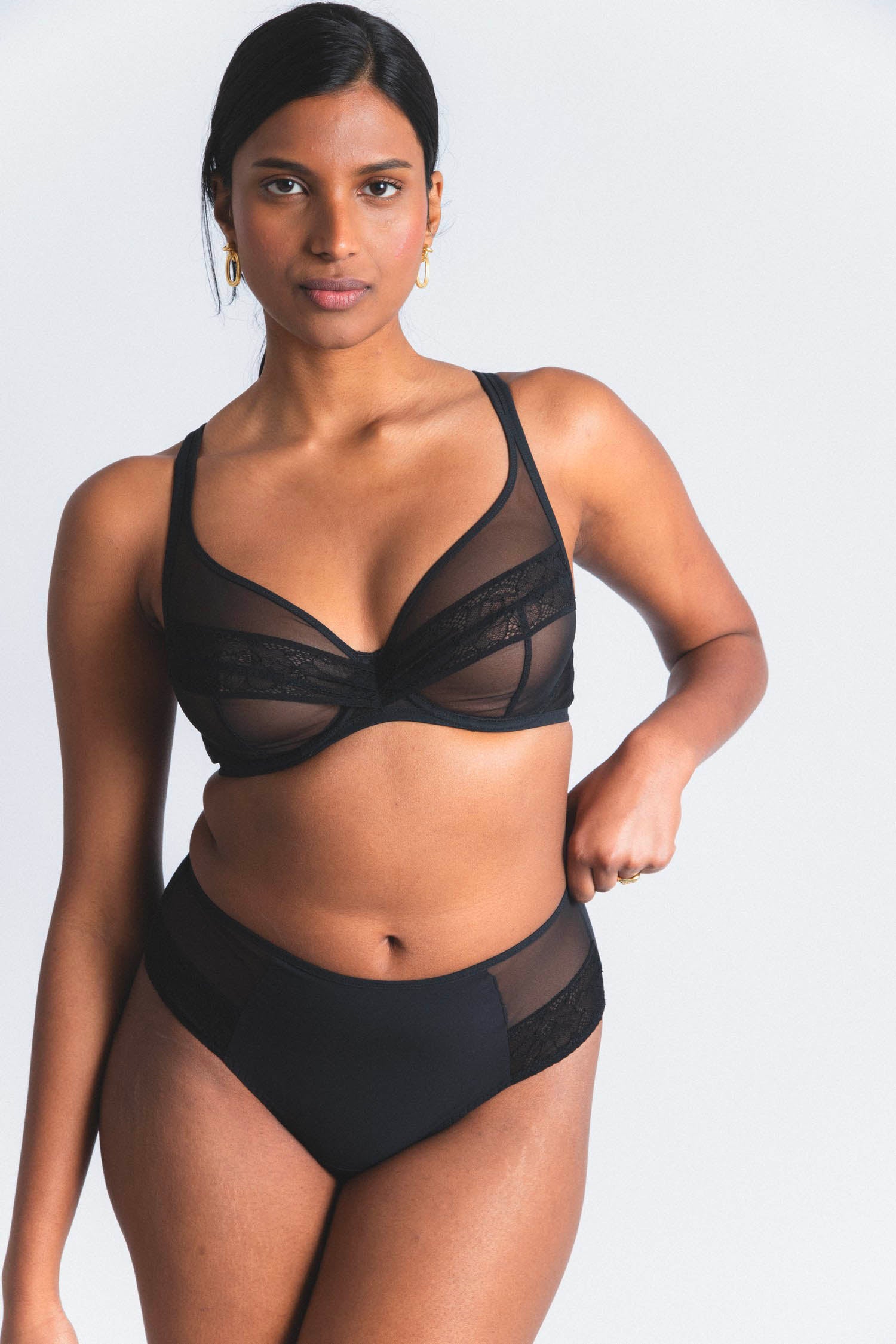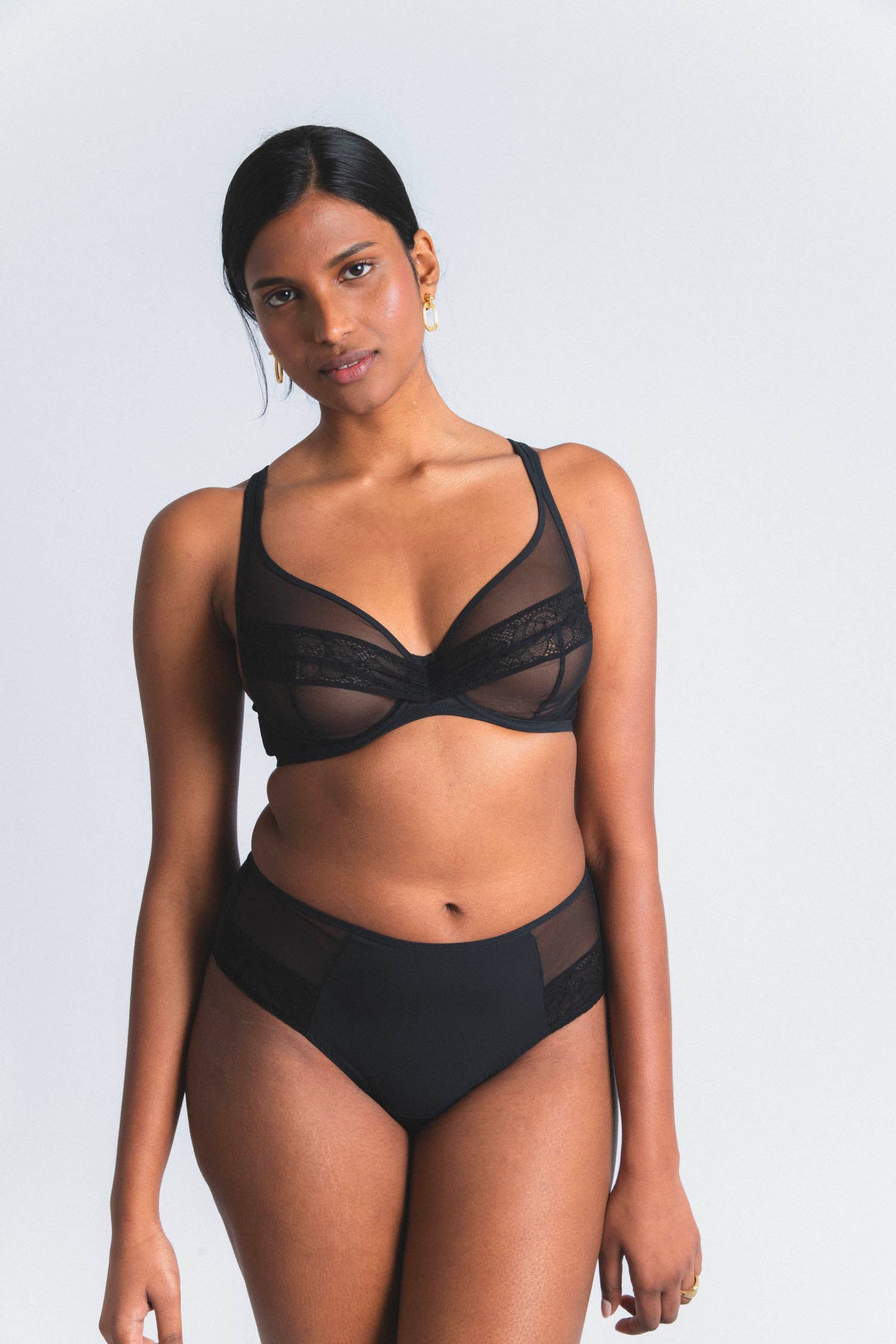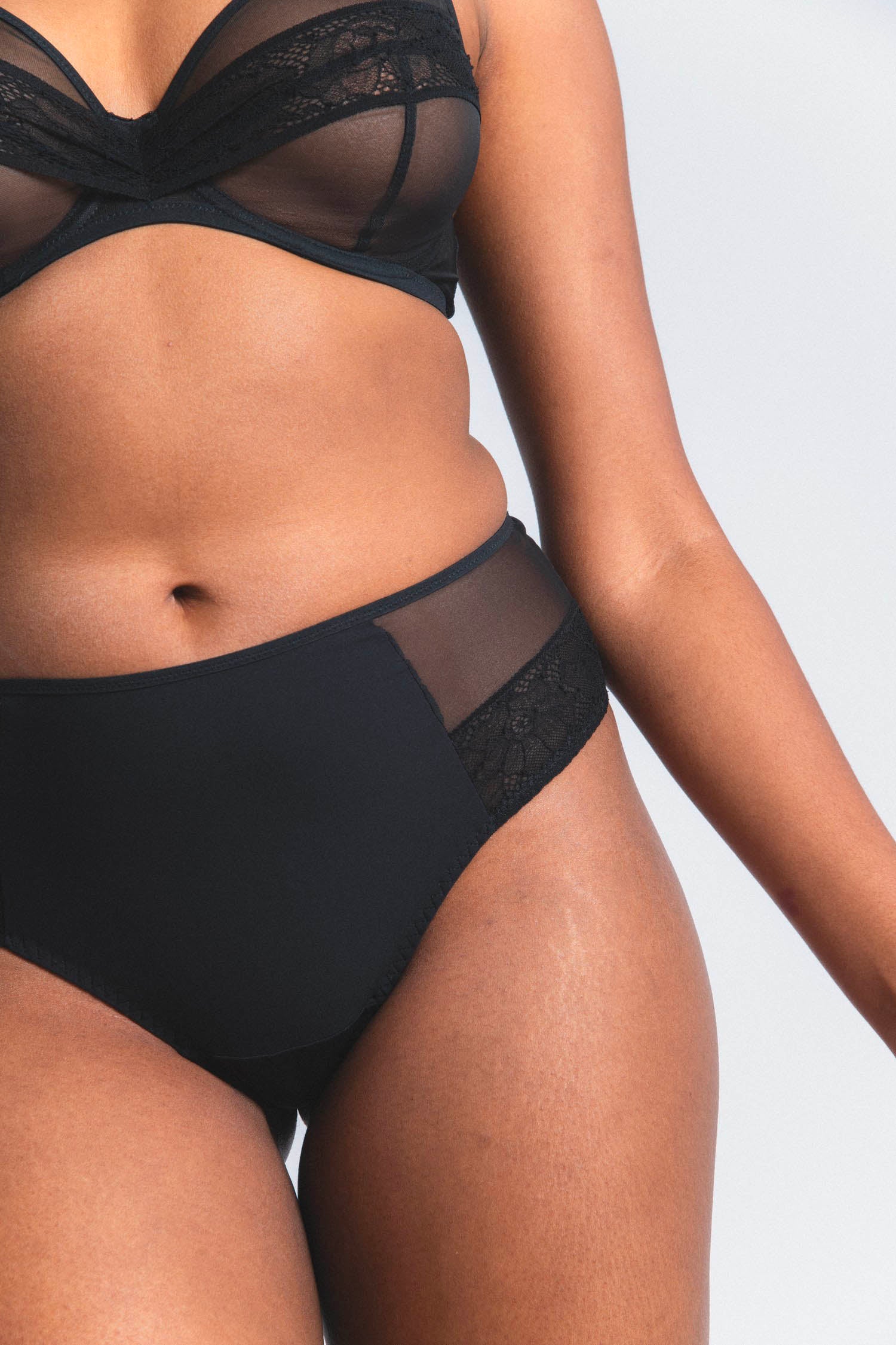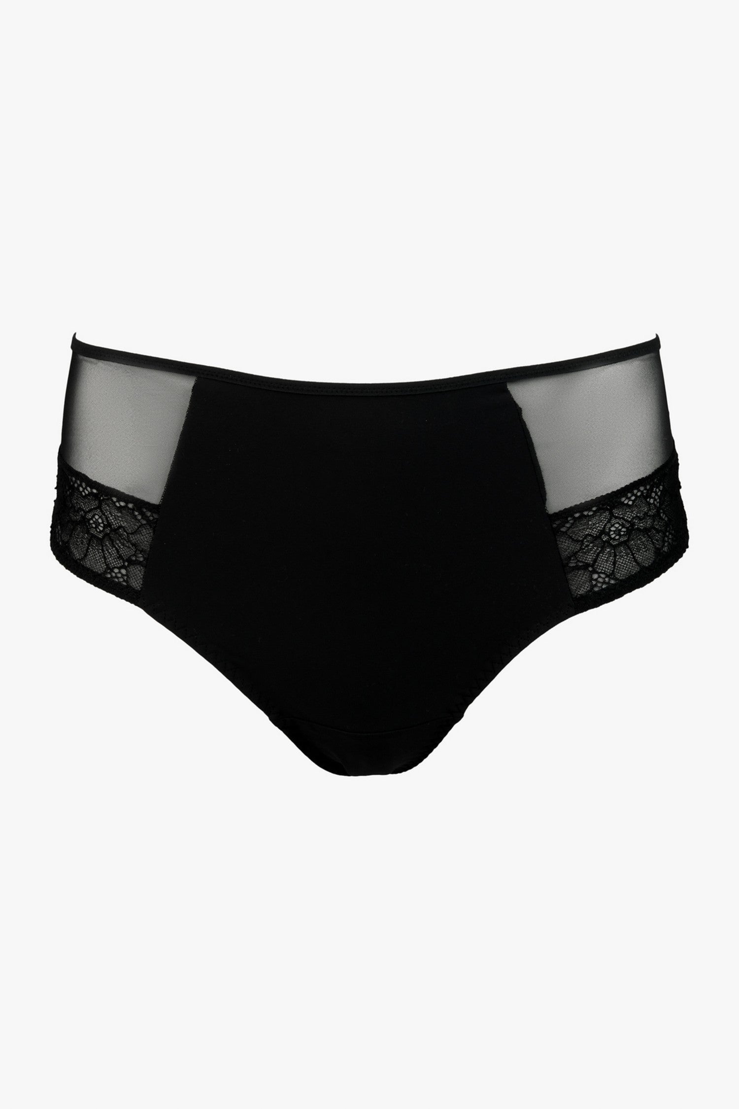 An elegant shorty-tanga in tulle and French Leavers lace, combining sensuality and comfort.