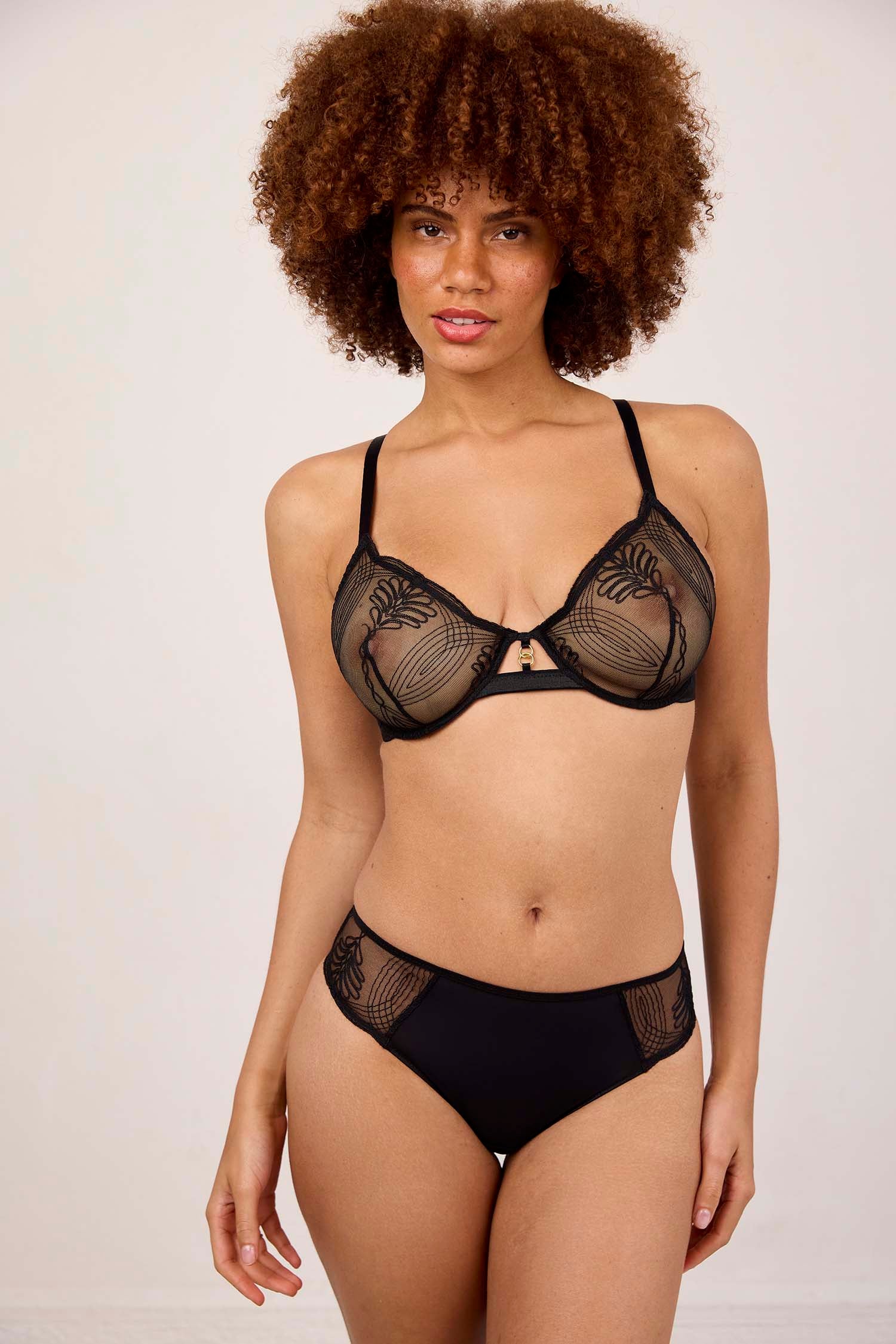 Une culotte échancrée en broderie française, alliant glamour et raffinement, pour un effet visuel impactant.