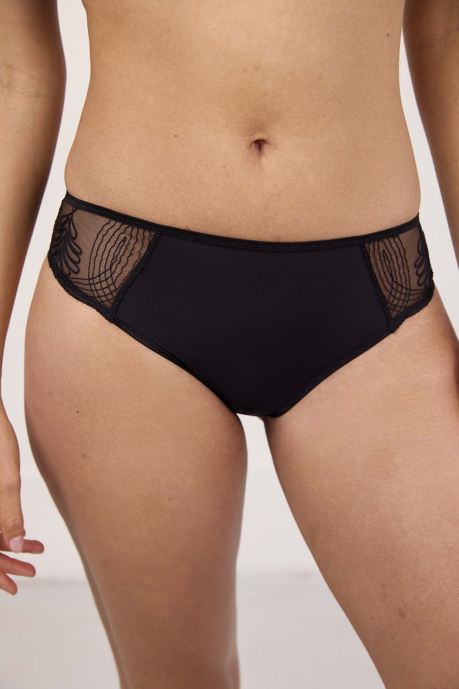 Culotte échancrée noire en broderie française
