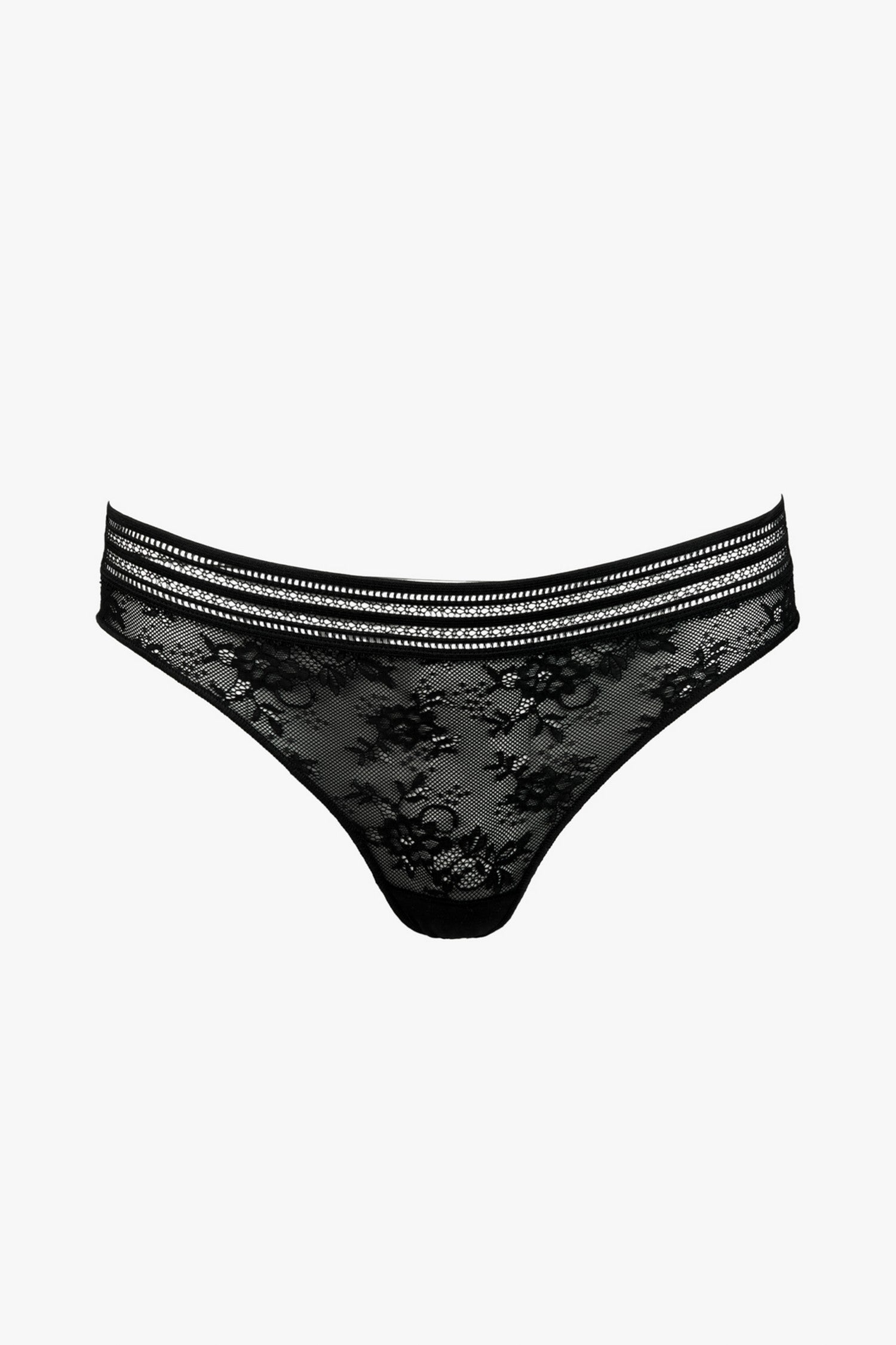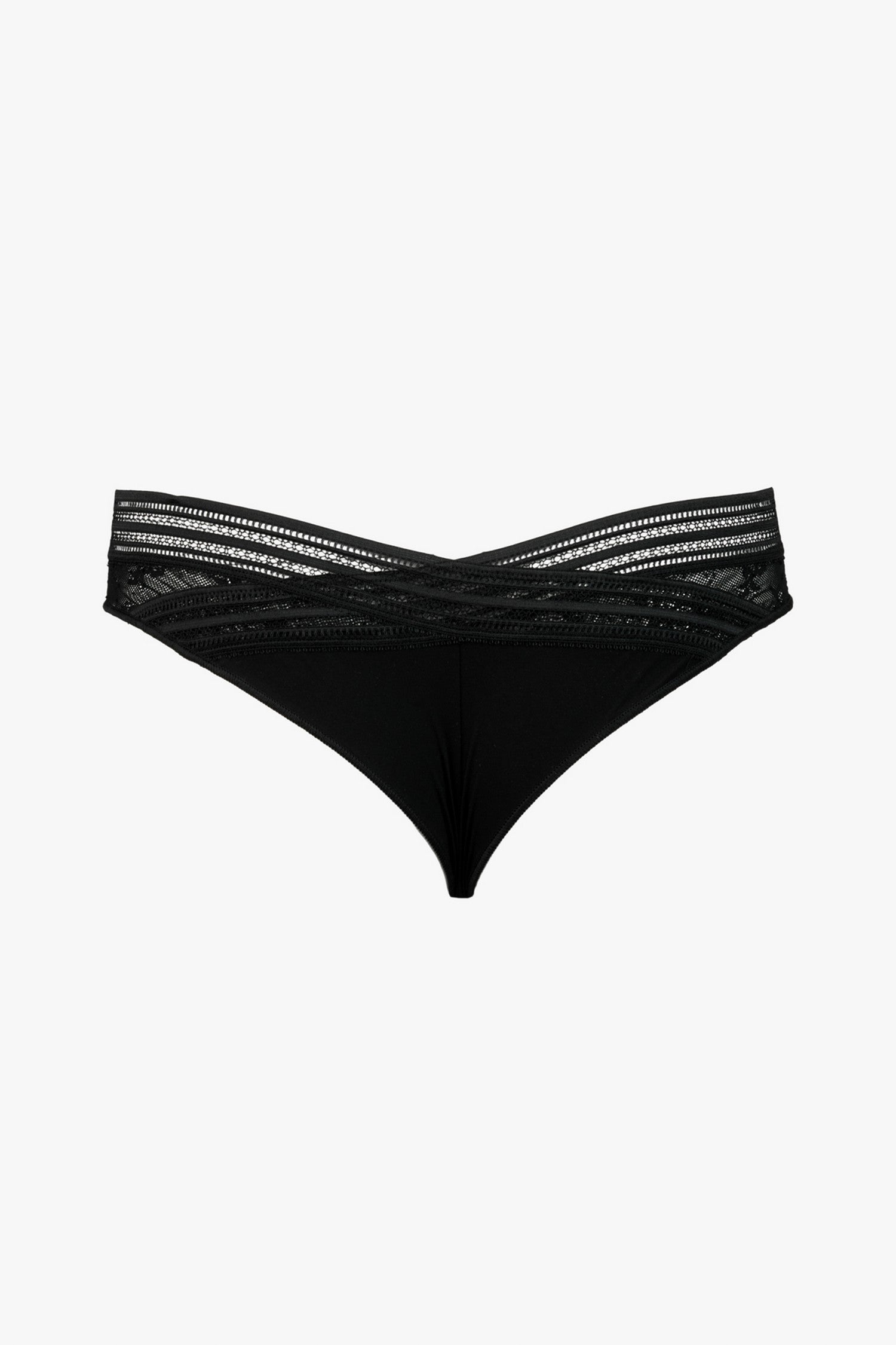Un tanga en dentelle couvrante, confortable et raffiné avec un joli galbe naturel.