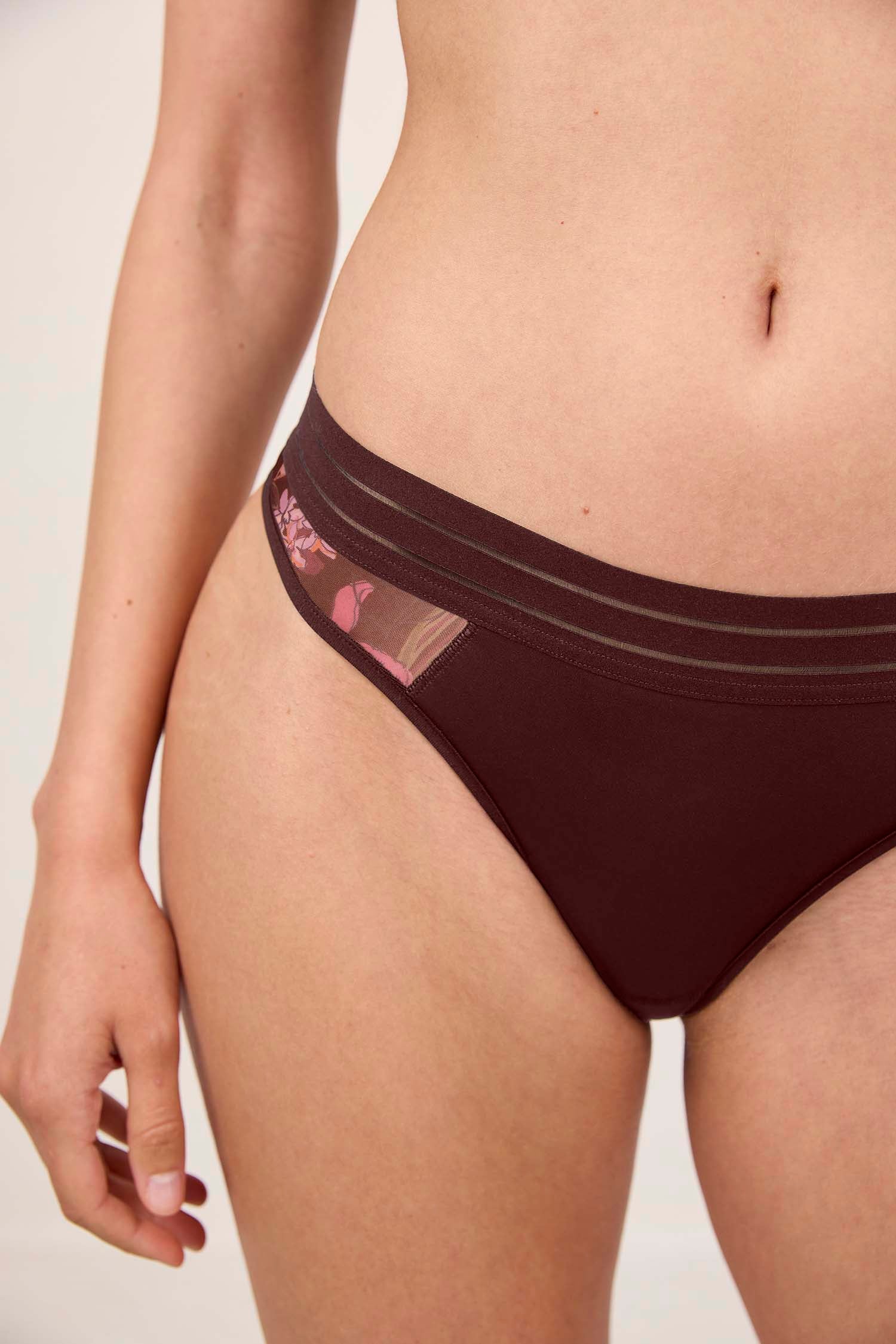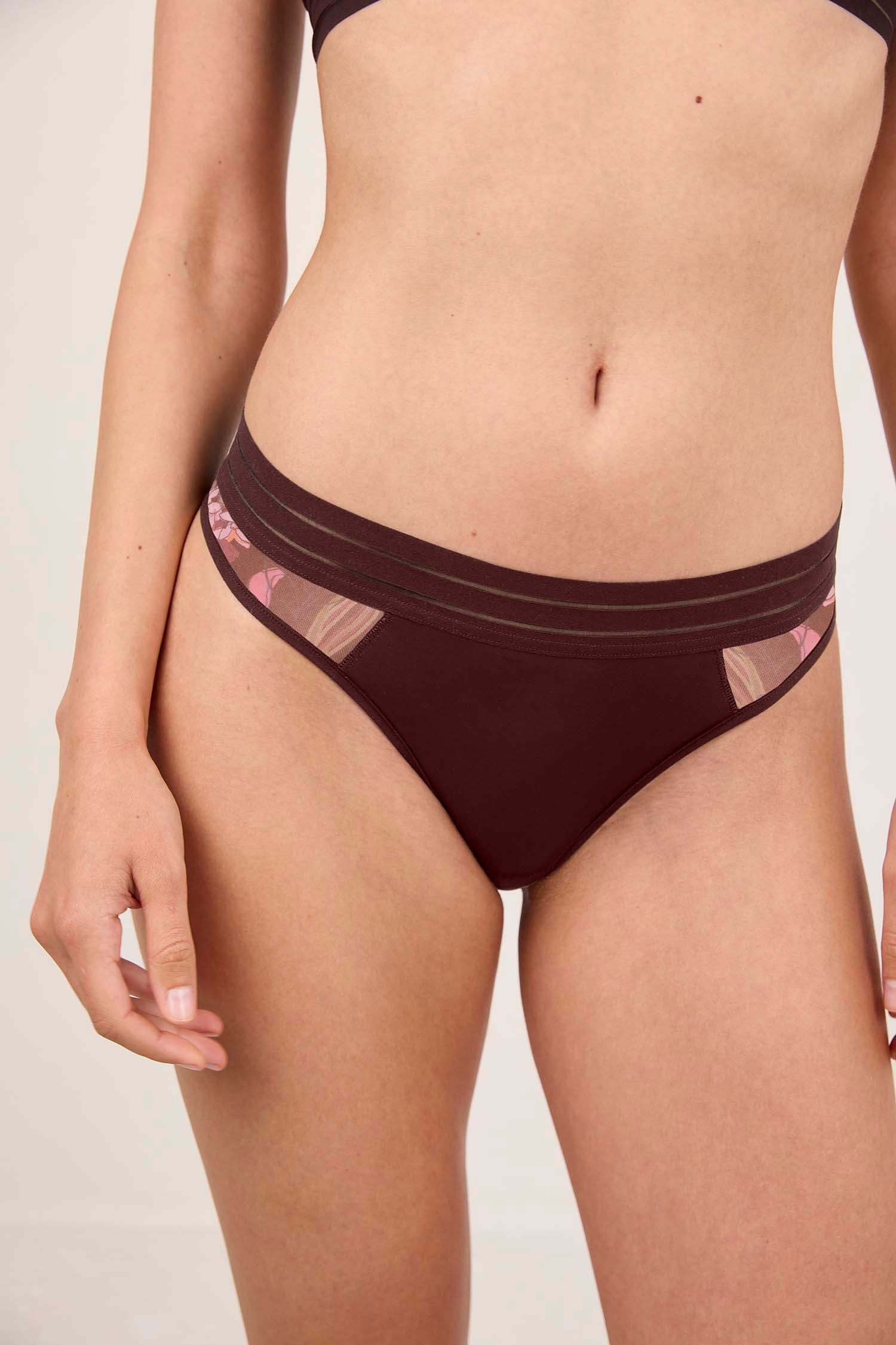 Un tanga ultra-confortable à l'esprit "sporty-chic" et au motif floral abstrait.