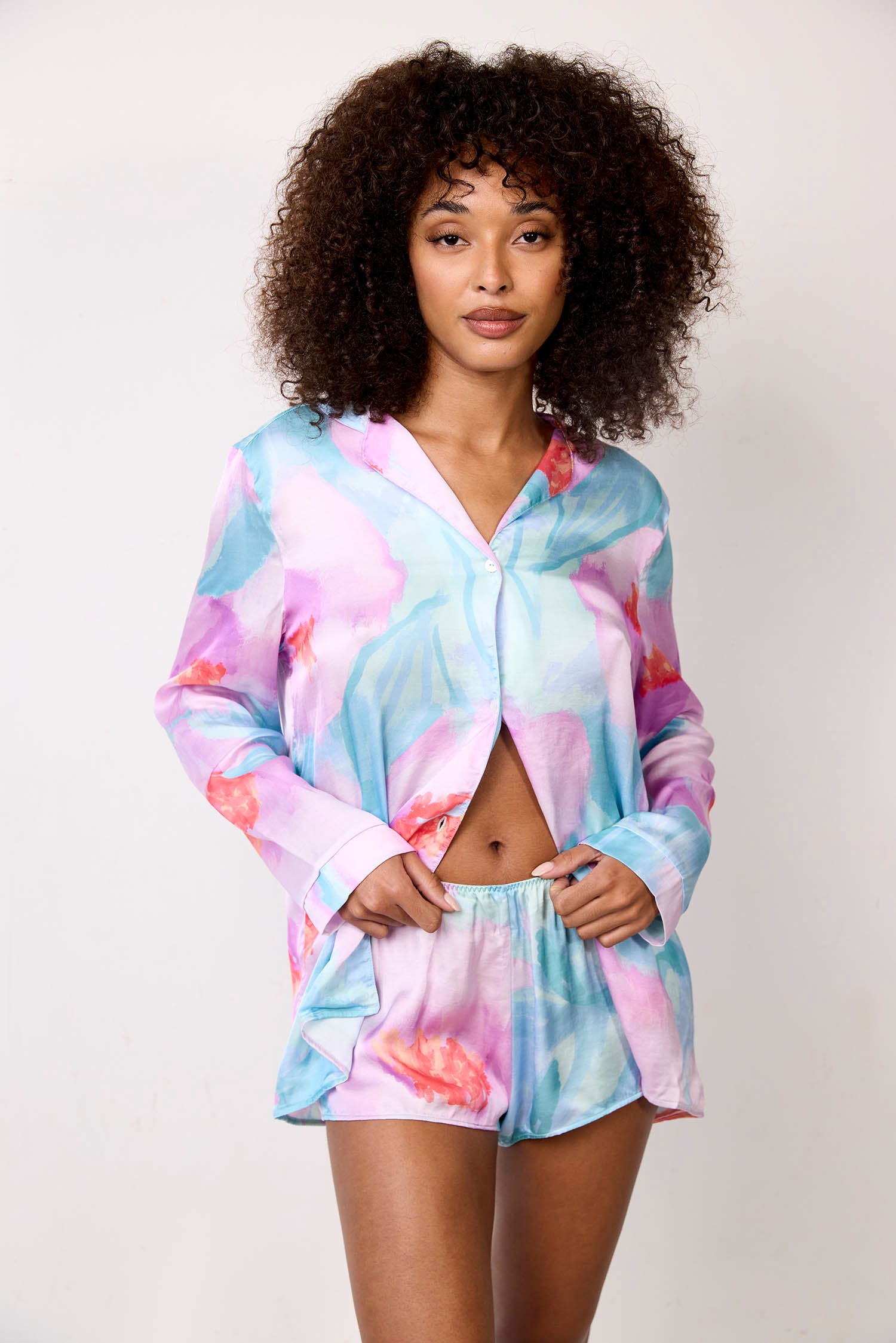 Un short imprimé d'un joli motif abstrait, chic et confortable, à porter de jour comme de nuit.