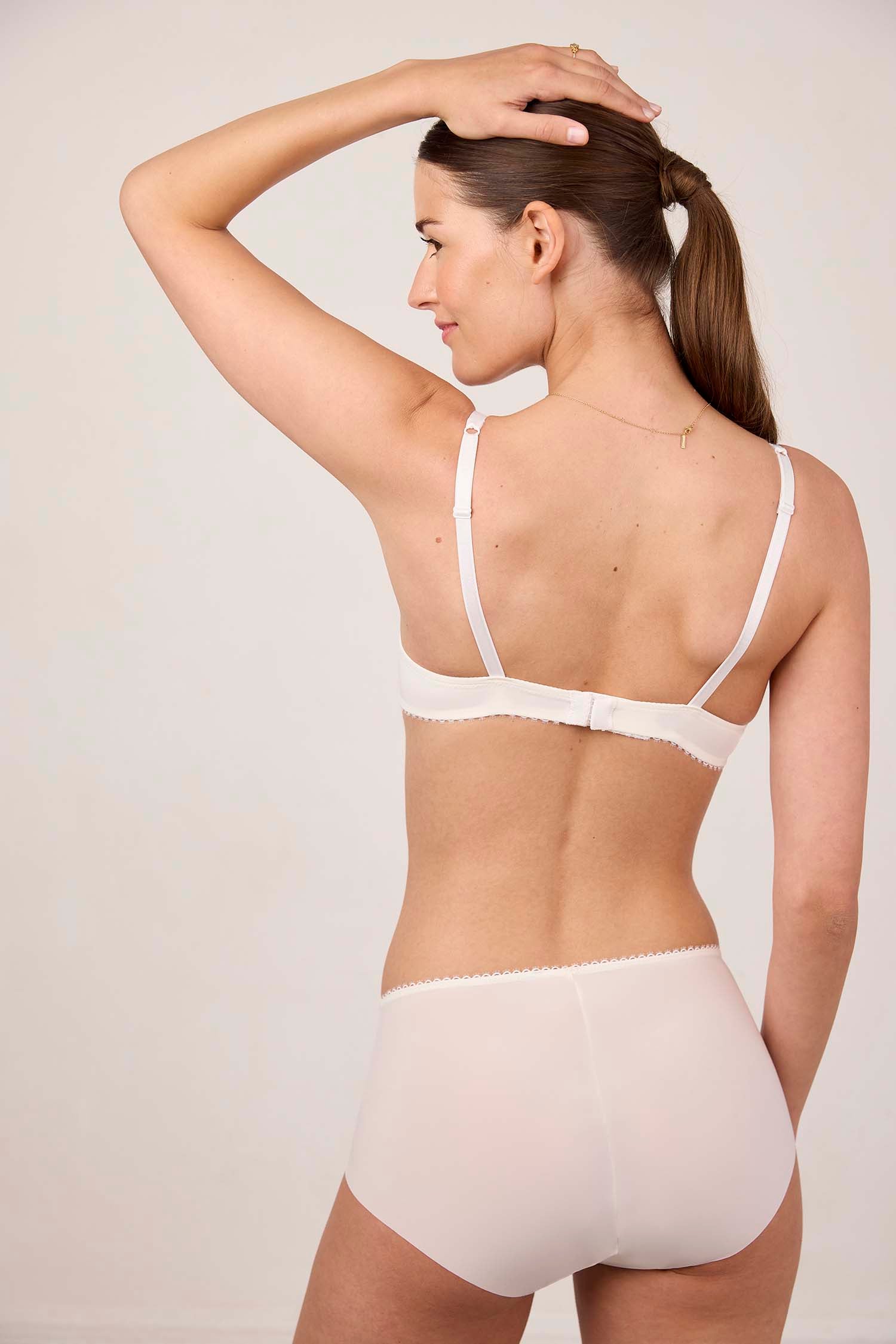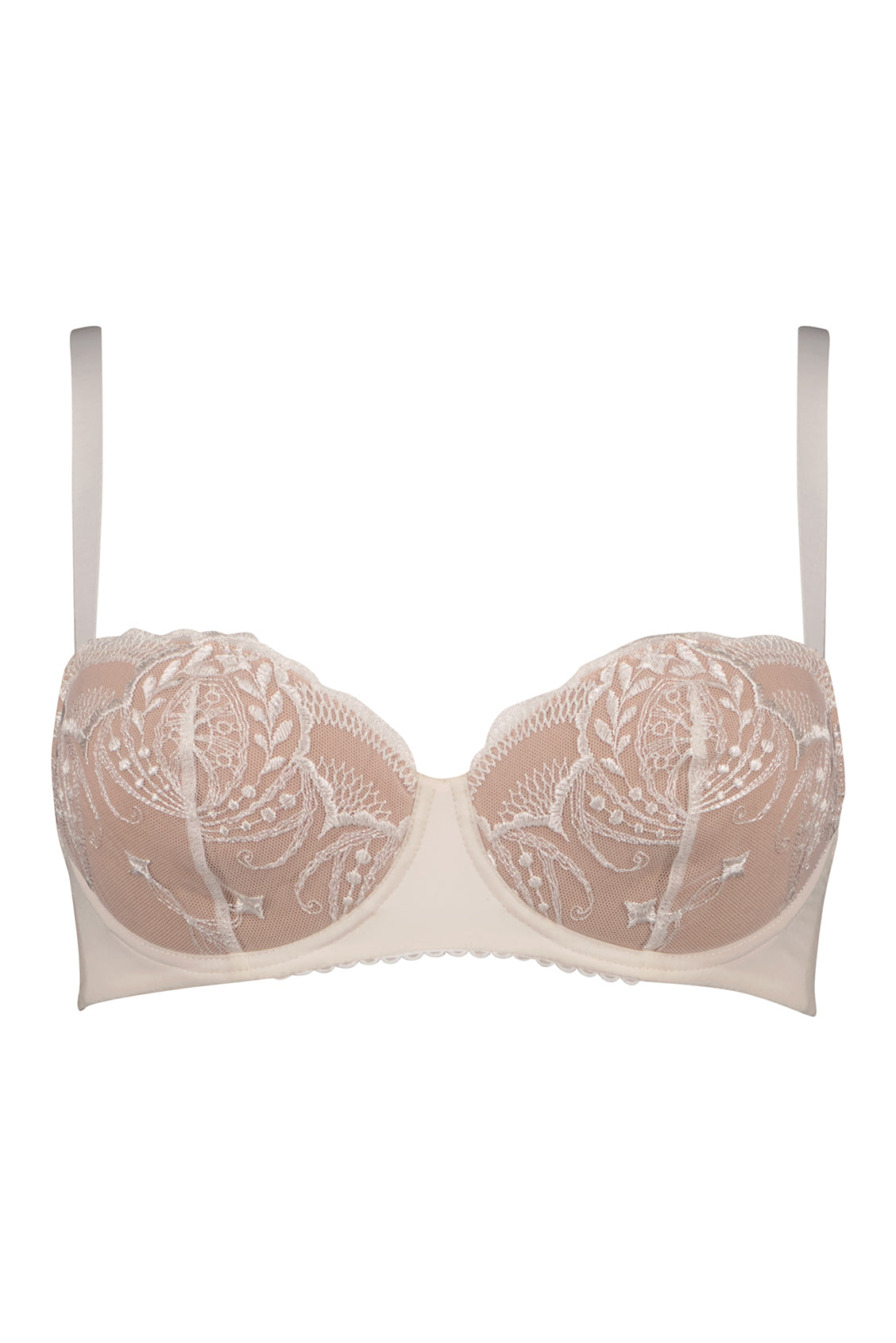 Un soutien-gorge corbeille mousse en broderie française, puisant son inspiration dans les archives emblématiques de la Maison, pour dessiner une silhouette tout en douceur et en poésie.