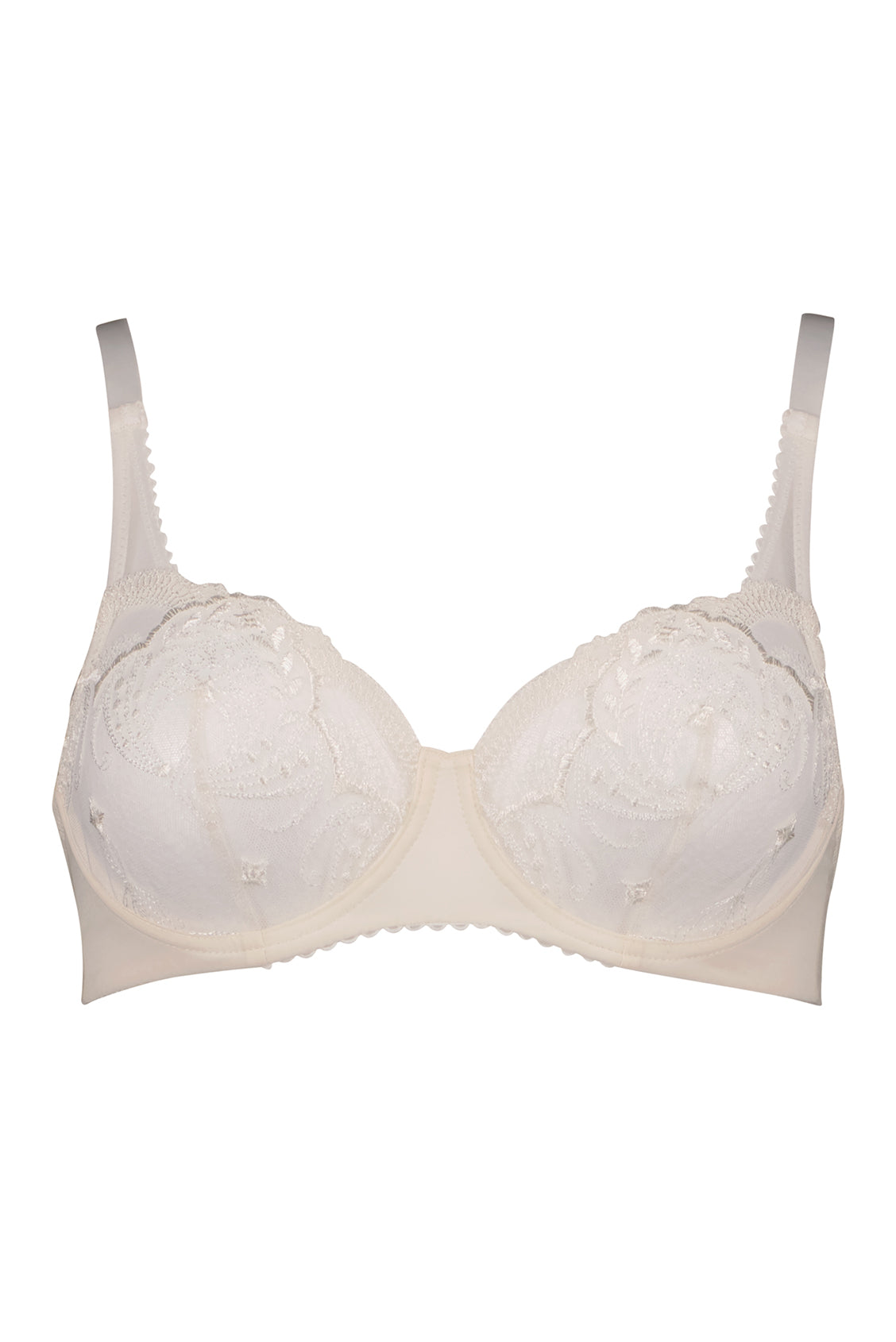 Un soutien-gorge avec armatures en broderie française, inspiré d’un modèle d’archive des années 80, pour conjuguer modernité, maintien et raffinement au quotidien.