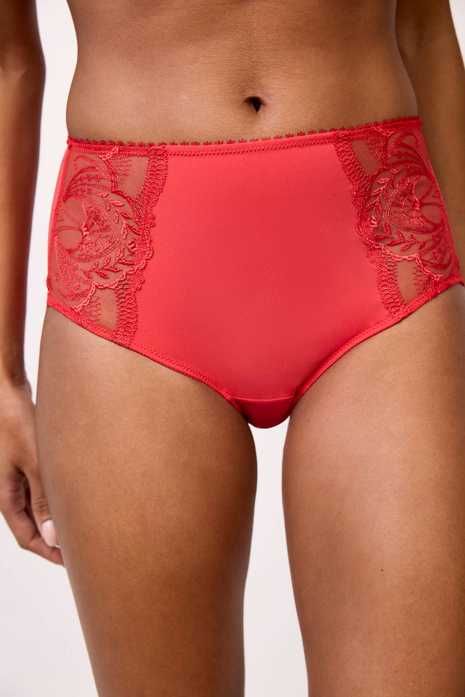 Culotte haute rouge en tulle et broderie française