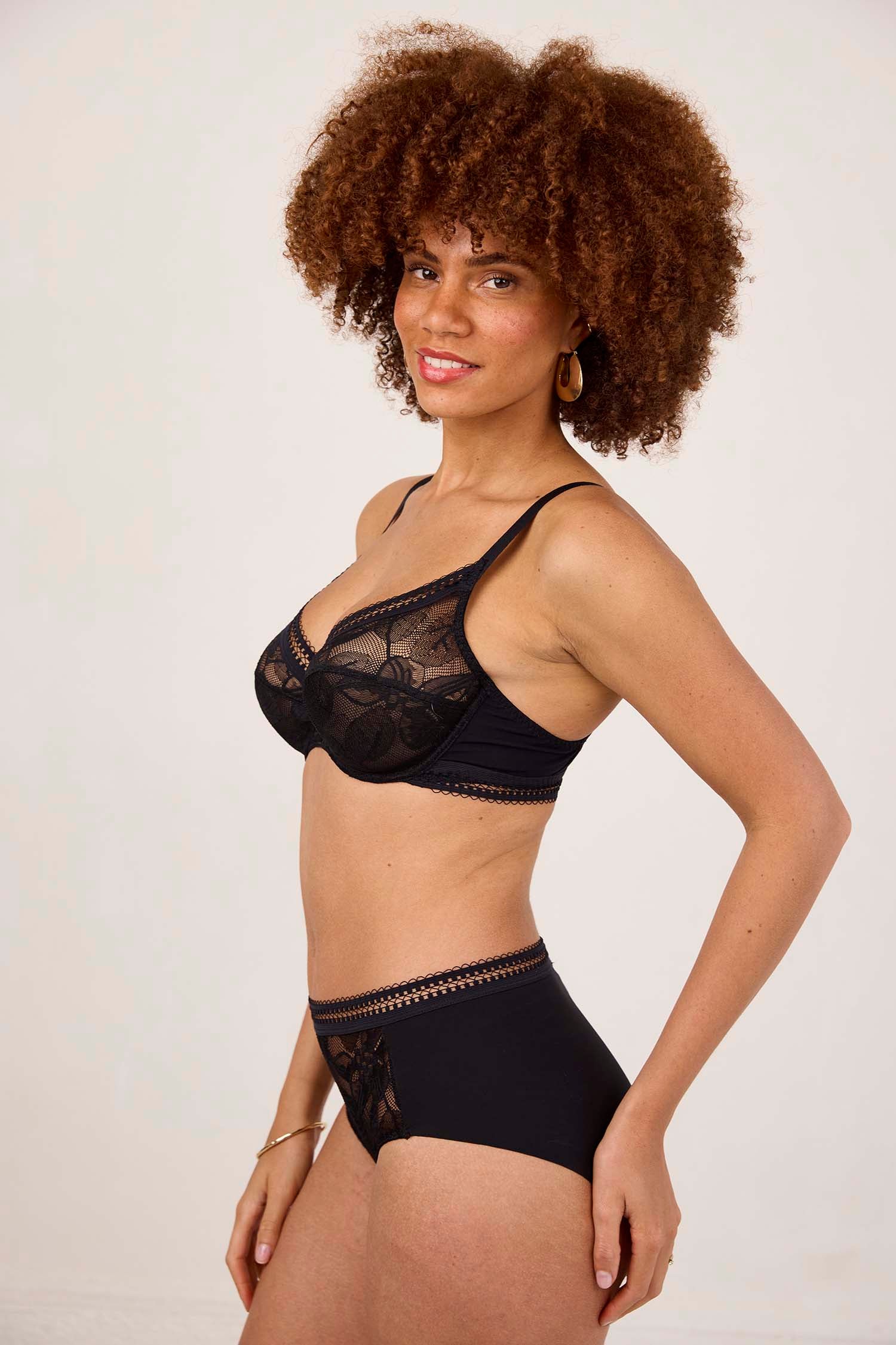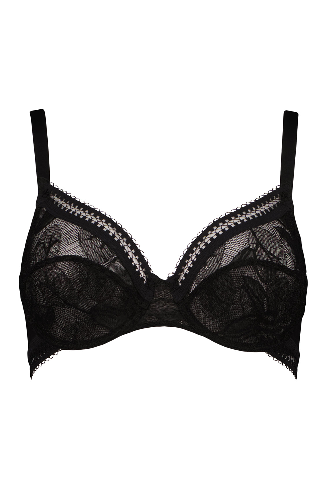 Un soutien-gorge avec armatures en dentelle française et dessin floral : une forme quotidienne convenant à toutes les poitrines.