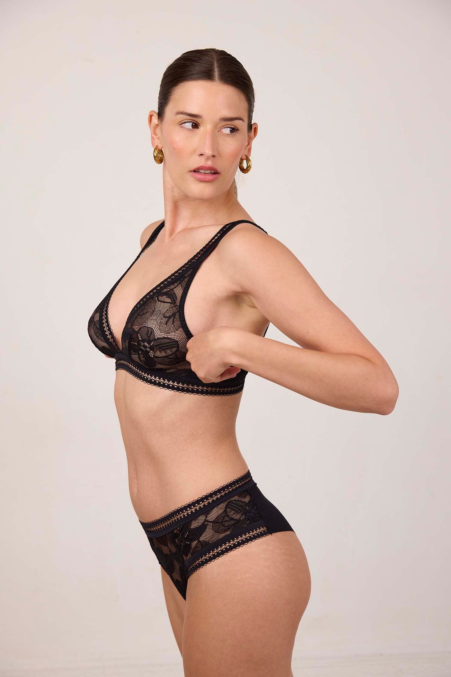 Soutien-gorge triangle sans armatures noir en dentelle florale