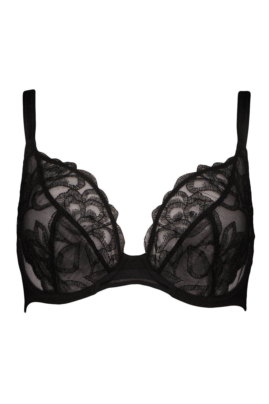 Soutien-gorge balconnet noir grande taille en broderie