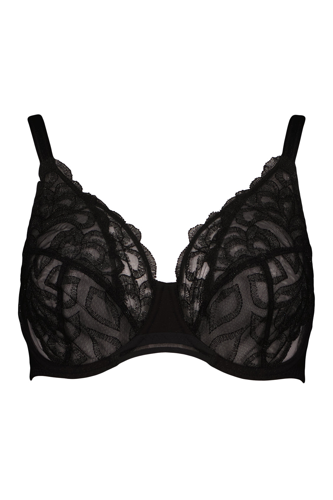 Un soutien-gorge avec armatures et en broderie suisse, pensé pour les poitrines généreuses, tout en offrant confort et féminité.